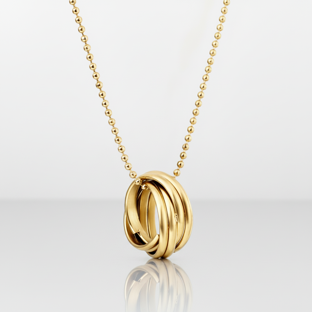 Embrace sculptural elegance with our Interlocking Knot Pendant Necklace. This stunning piece features a bold, orb-like pendant crafted from multiple polished rings that twist and lock together, symbolizing unity and eternal connection (similar to classic Love Knot designs). The solid, fluid form of the pendant contrasts beautifully with the delicate texture of the trendy Bead Chain, giving it a luxurious, modern edge.